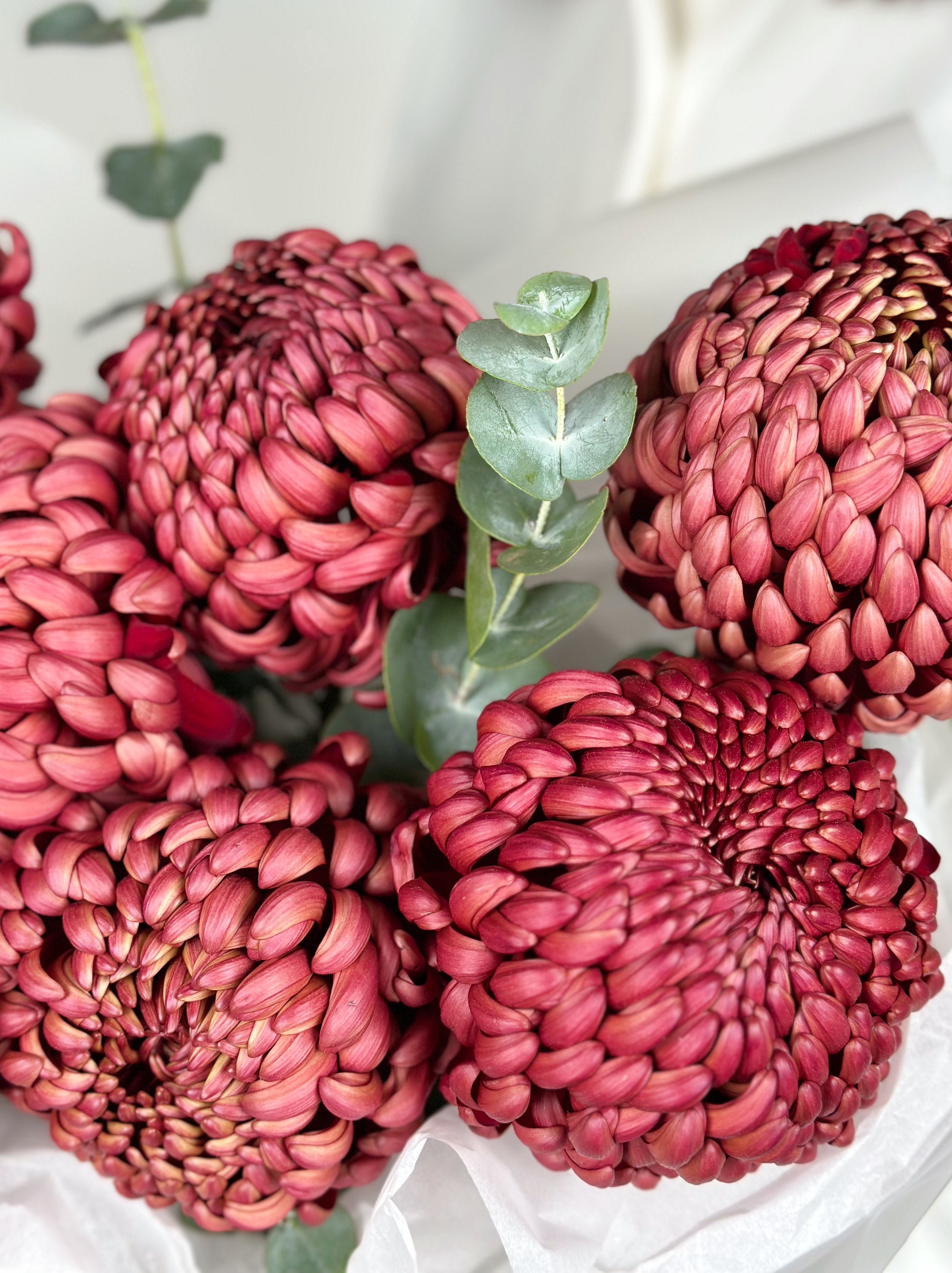 БУКЕТ С ХРИЗАНТЕМОЙ И ЭВКАЛИПТОМ