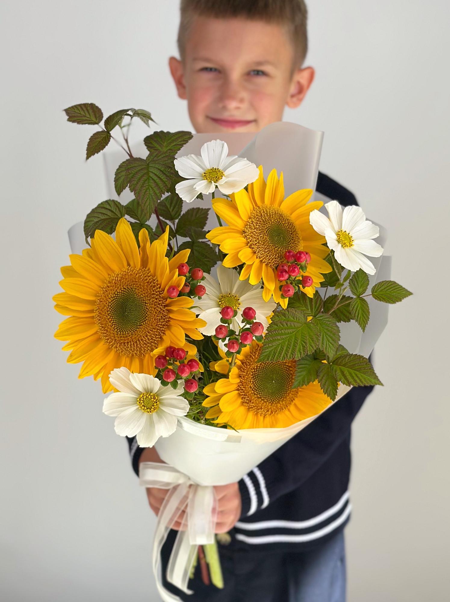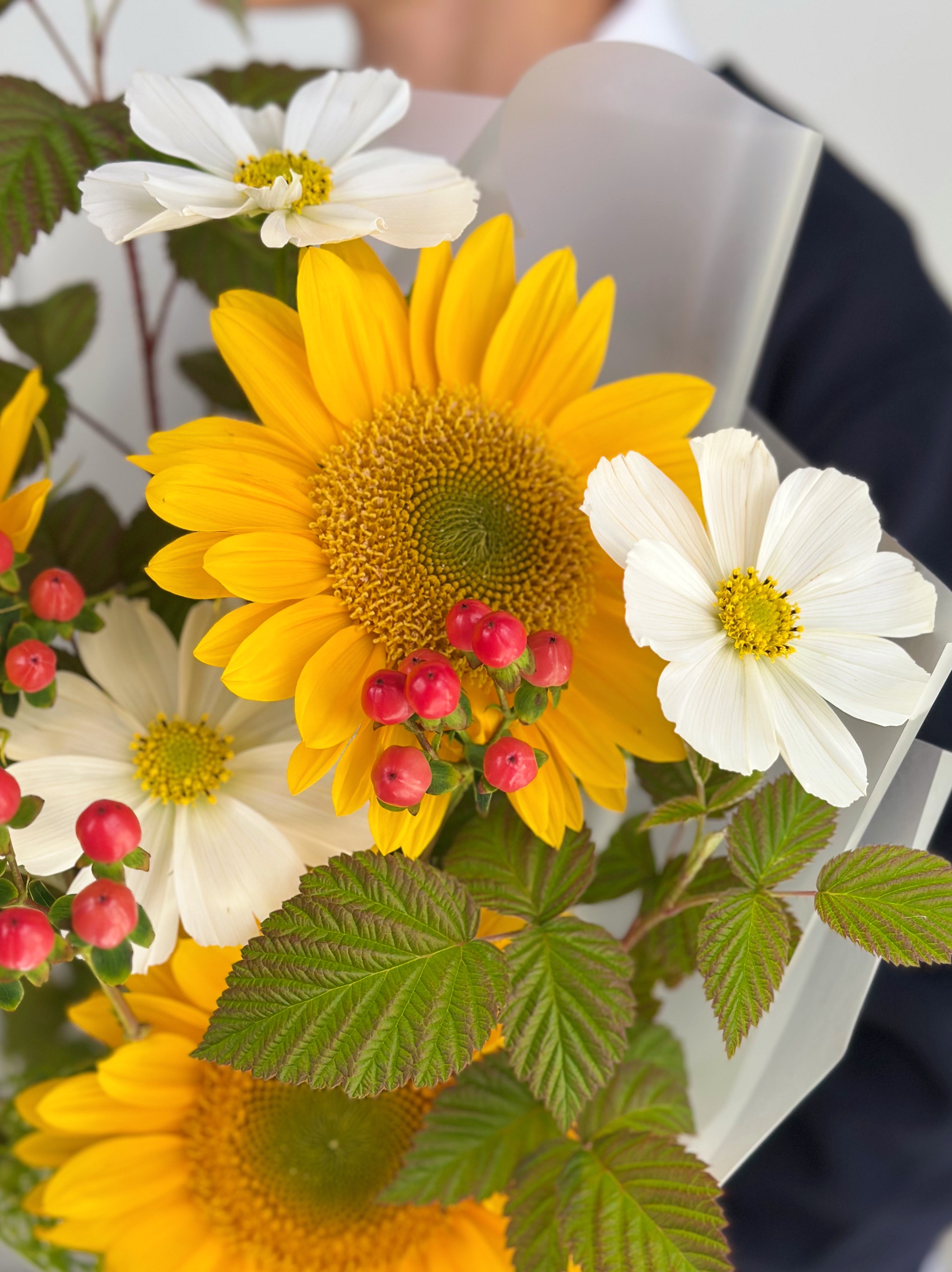 —БУКЕТ С ПОДСОЛНУХАМИ И КОСМЕЕЙ