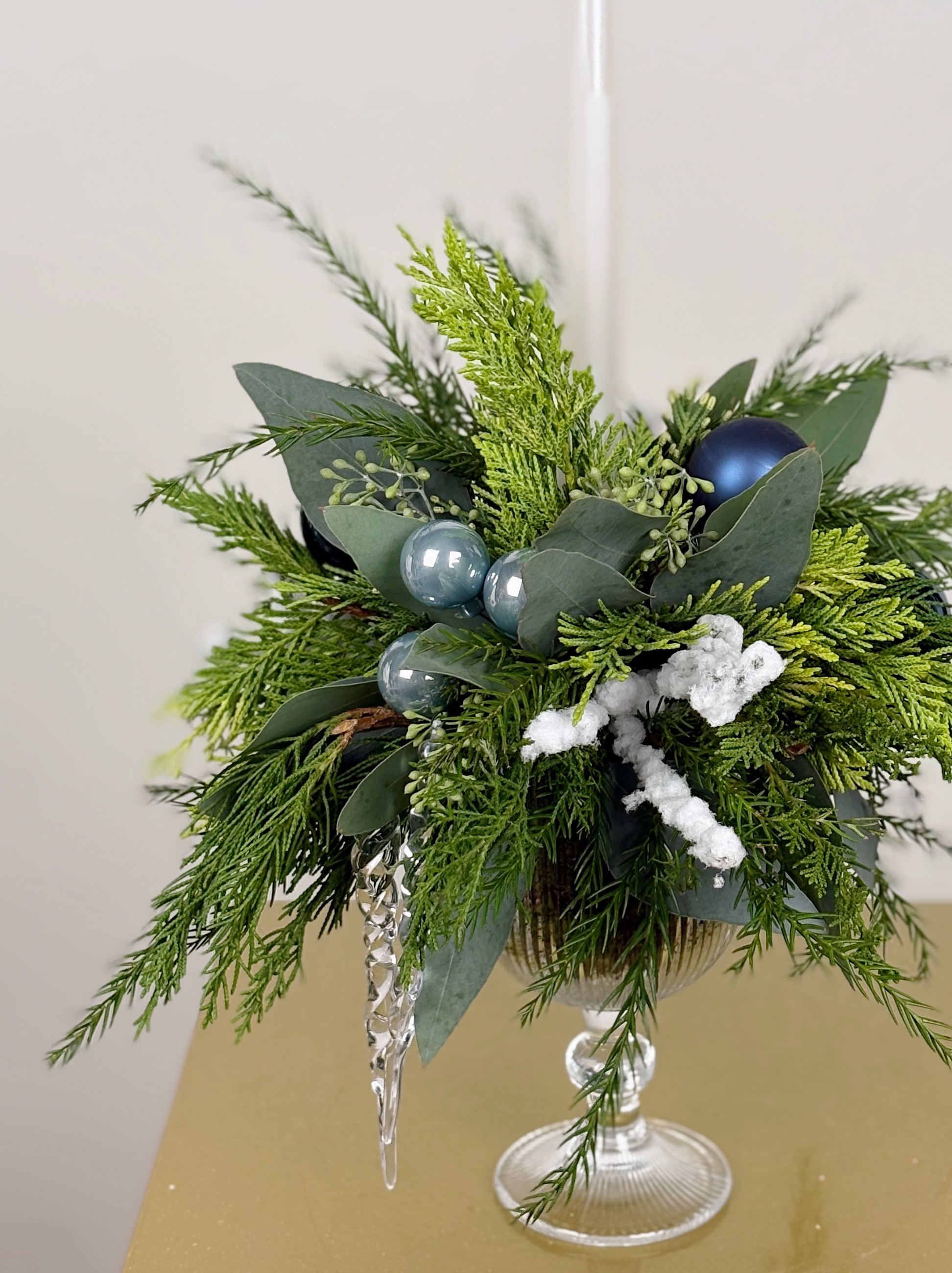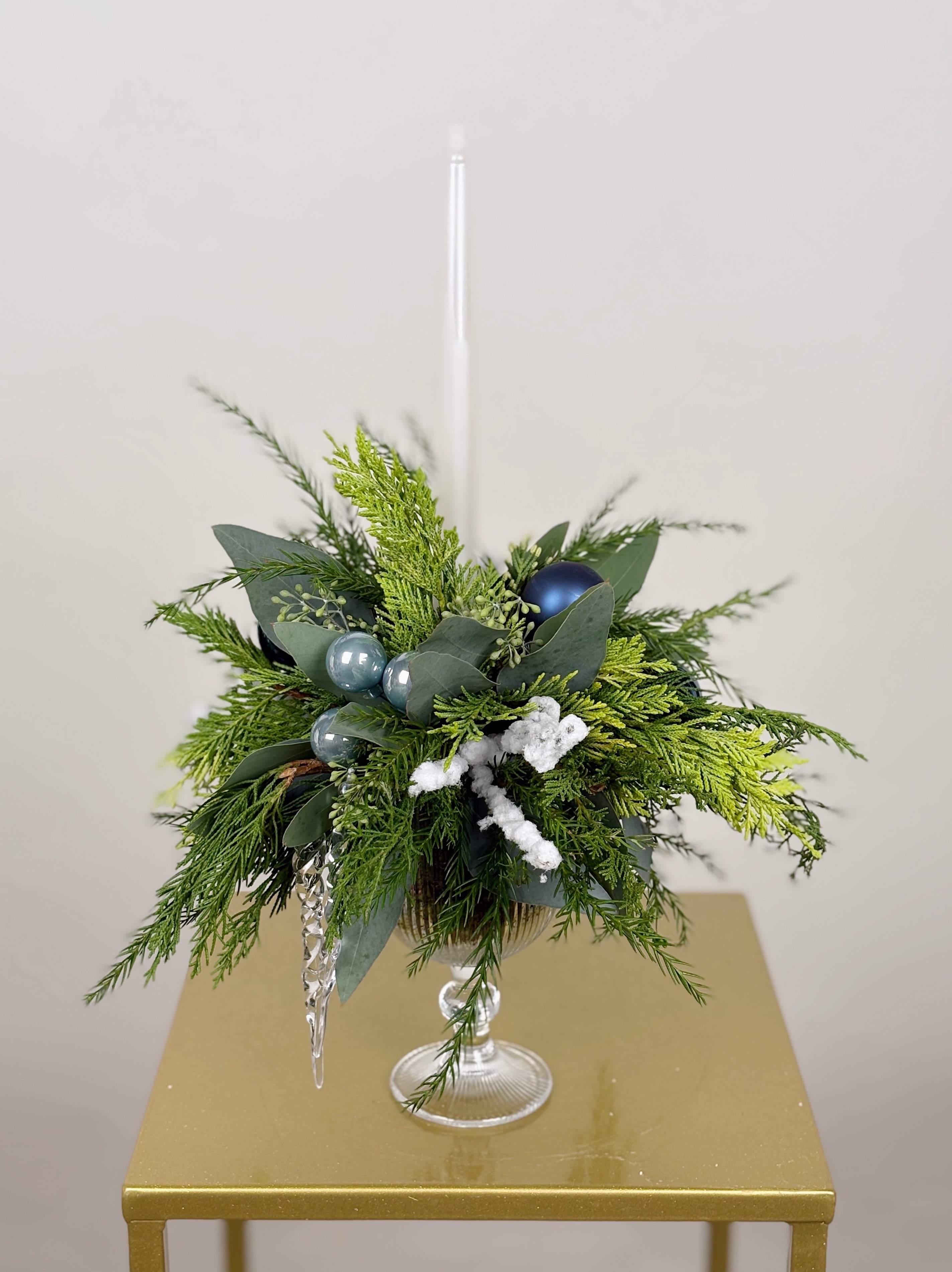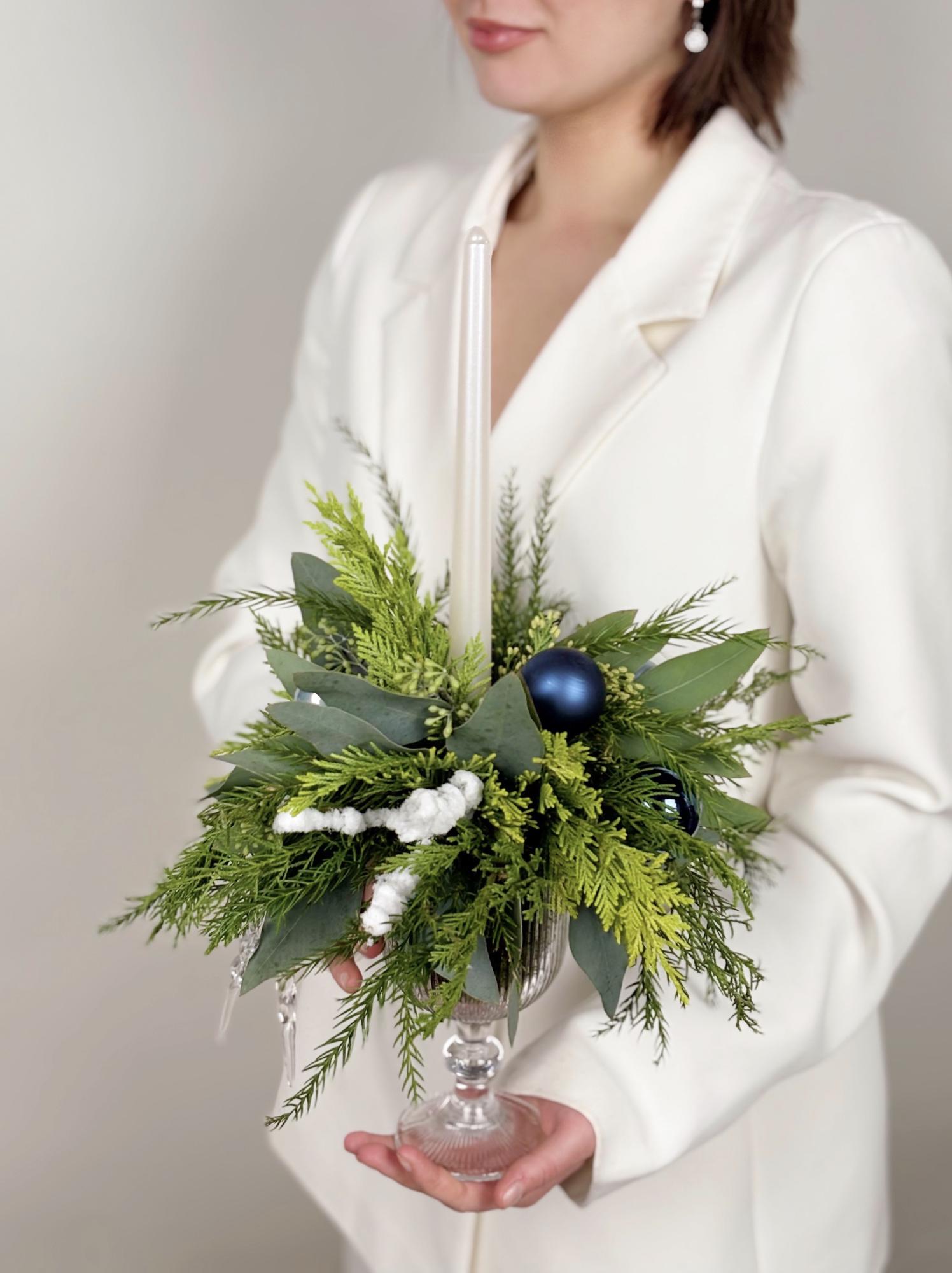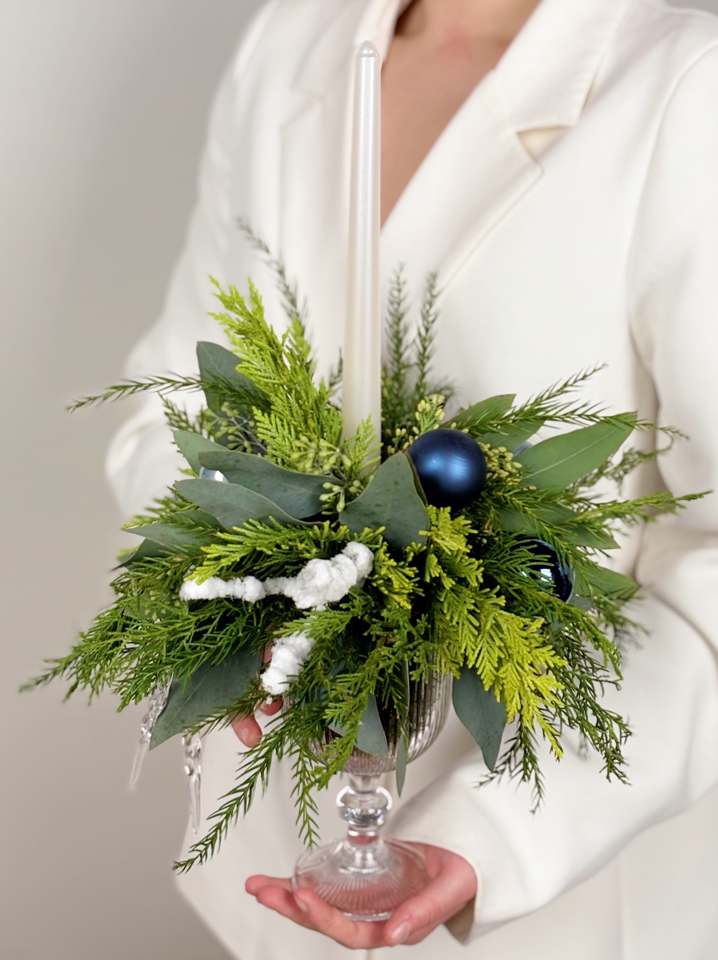 —ХВОЯ В БОКАЛЕ СО СВЕЧЕЙ В СИНЕМ ОТТЕНКЕ
