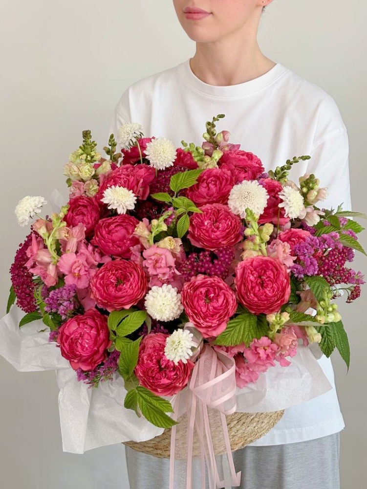 БОЛЬШАЯ КОРЗИНА С ПИОНОВИДНОЙ РОЗОЙ