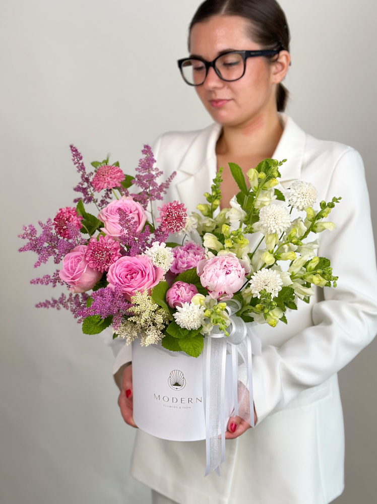 НЕЖНЫЙ БУКЕТ В ШЛЯПНОЙ КОРОБКЕ