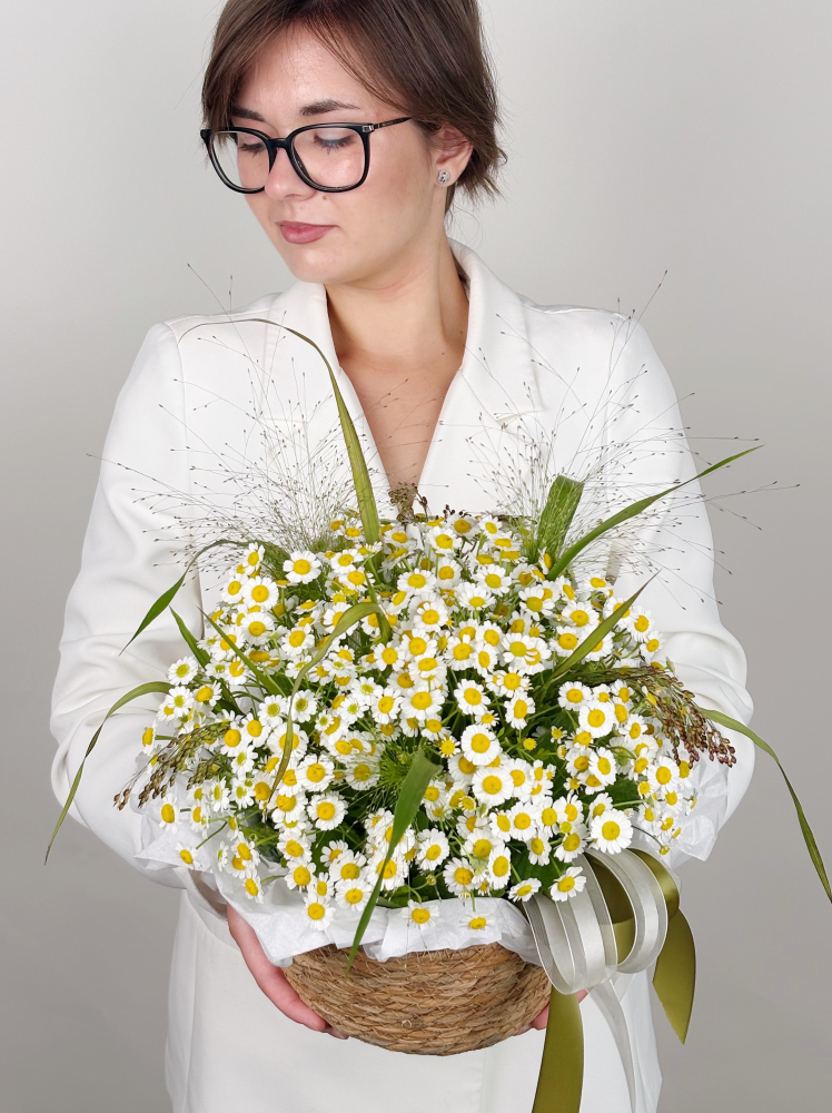 КОРЗИНА С РОМАШКОЙ И ЗЛАКАМИ