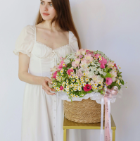 БОЛЬШАЯ КОРЗИНА С СЕЗОННЫМИ ЛЕТНИМИ ЦВЕТАМИ