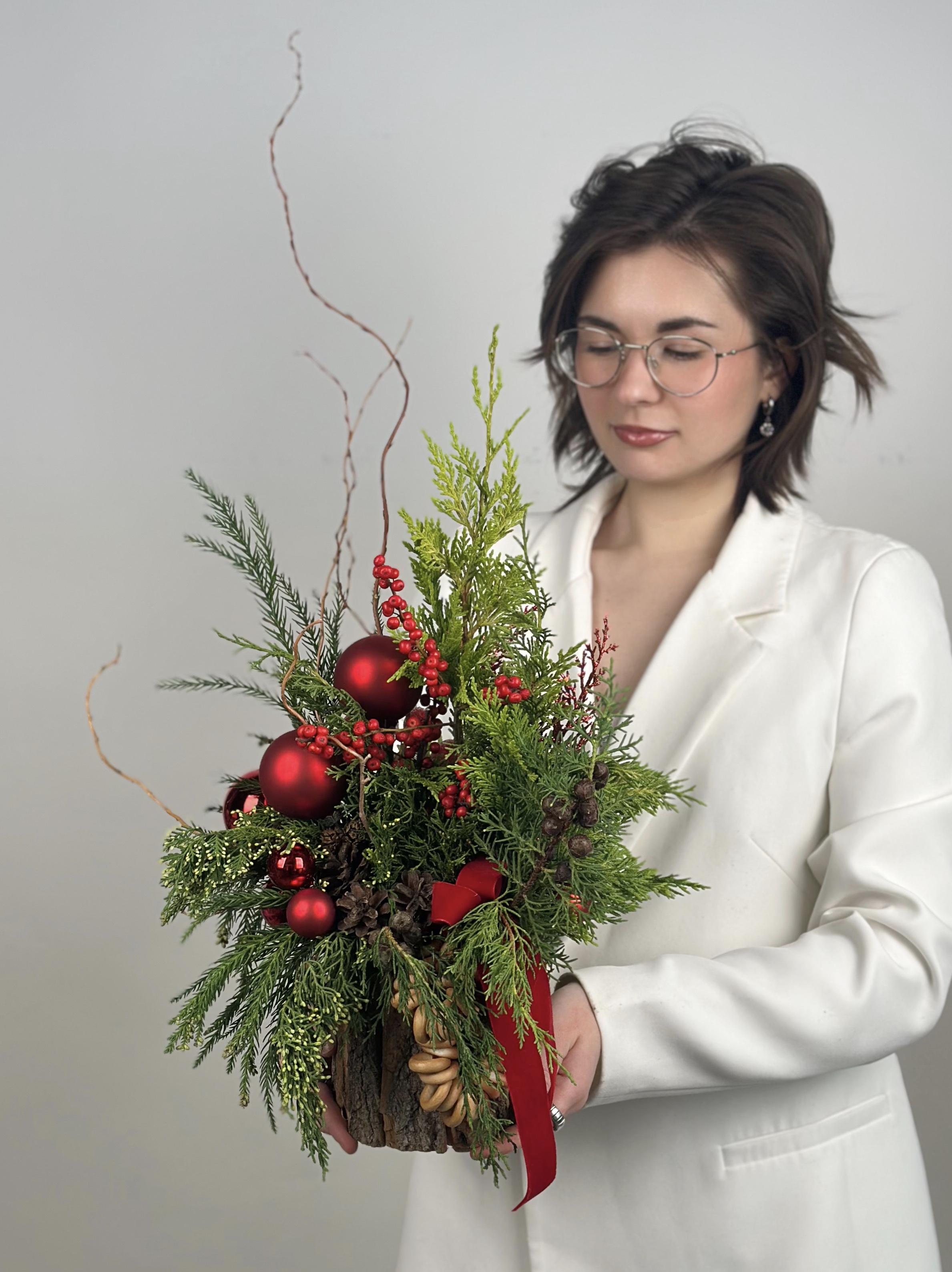 —КОМПОЗИЦИЯ ИЗ ХВОИ В НАТУРАЛЬНОМ КАШПО