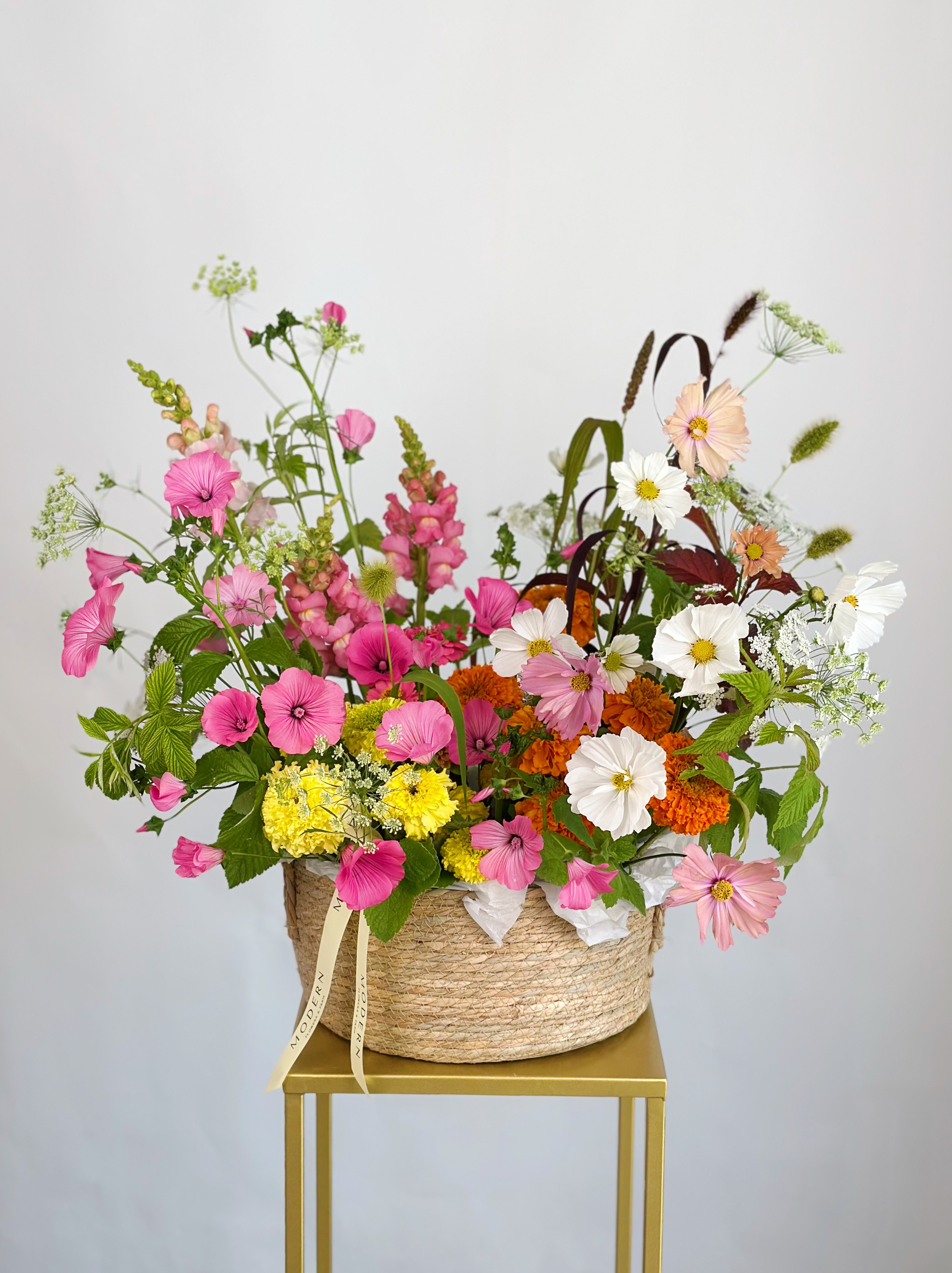 Представляем вам уникальную композицию из свежесрезанных фермерских цветов, собранных с любовью на наших полях. Плетёная корзина, наполненная яркими летними цветами, создаст атмосферу уюта в вашем доме.