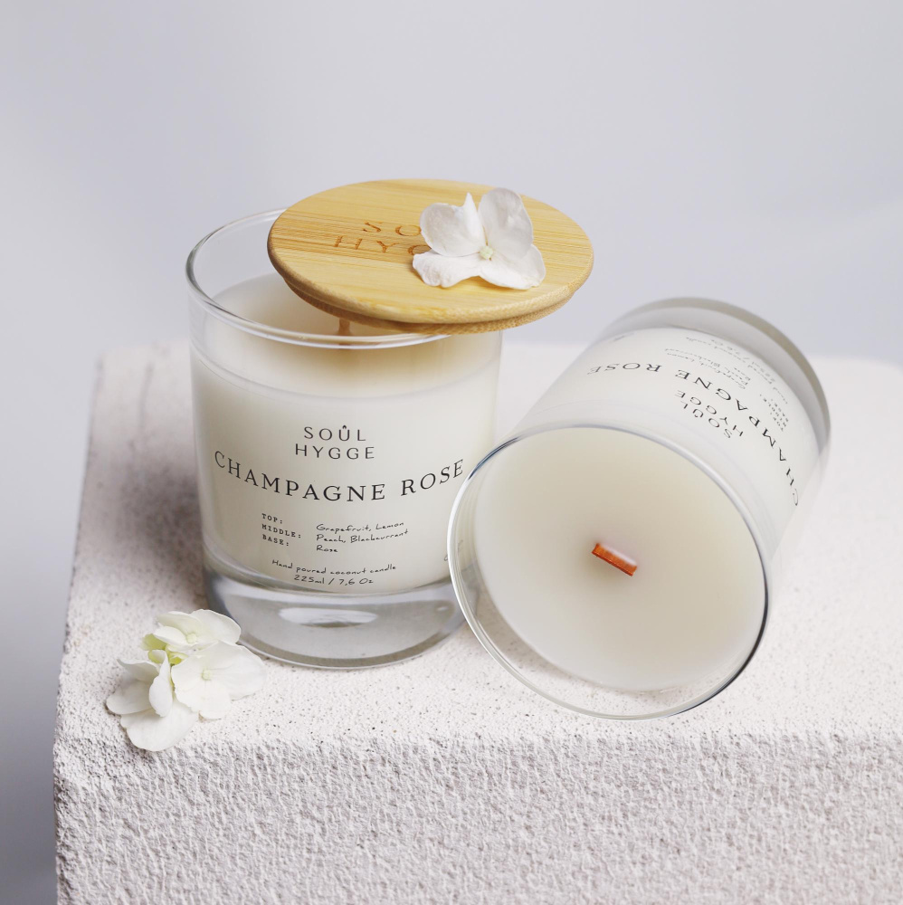 Свеча CHAMPAGNE ROSE (деревянный фитиль)