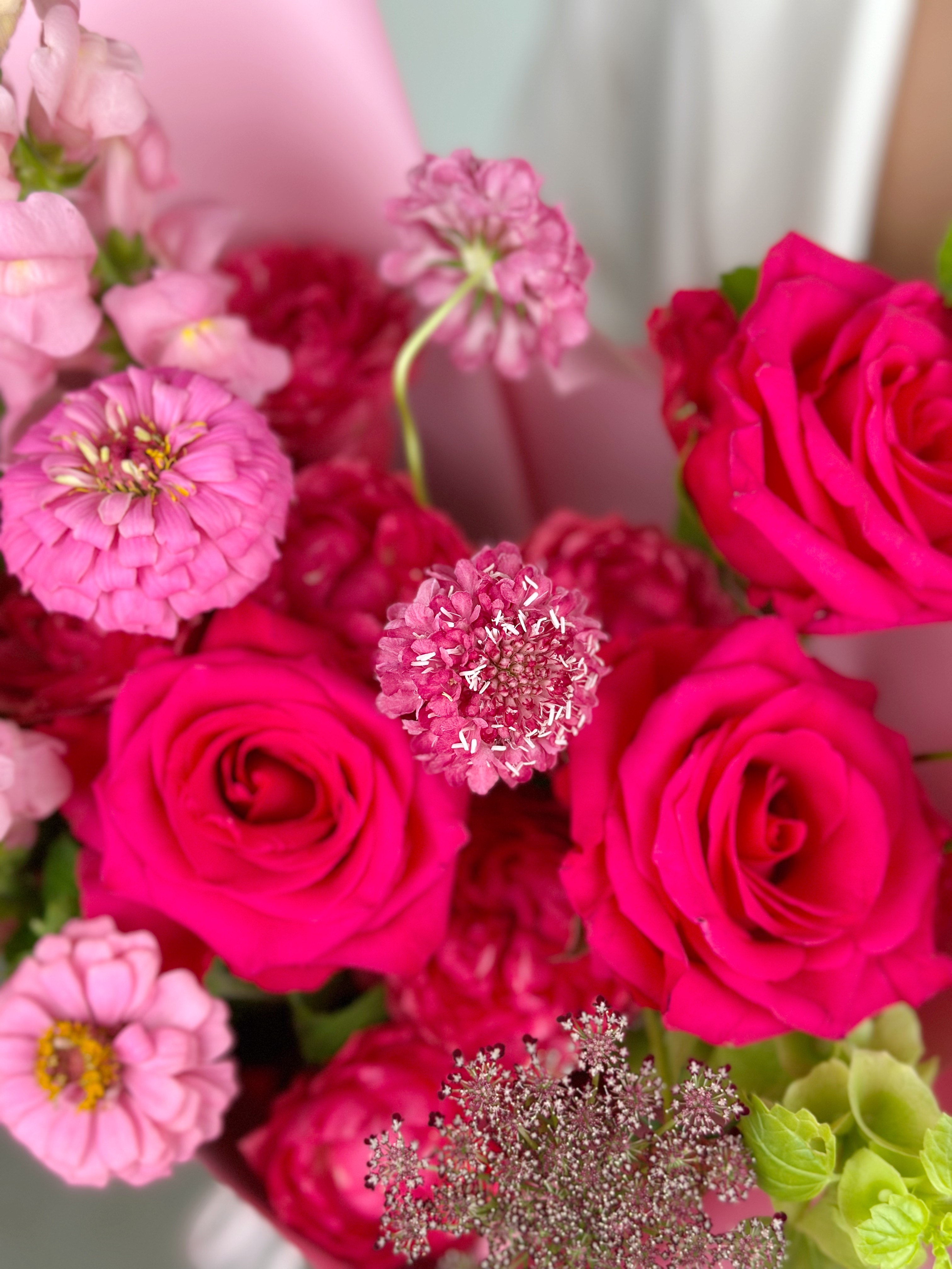 —ЯРКИЙ БУКЕТ С ПИОНОВИДНОЙ РОЗОЙ И ЛЬВИНЫМ ЗЕВОМ